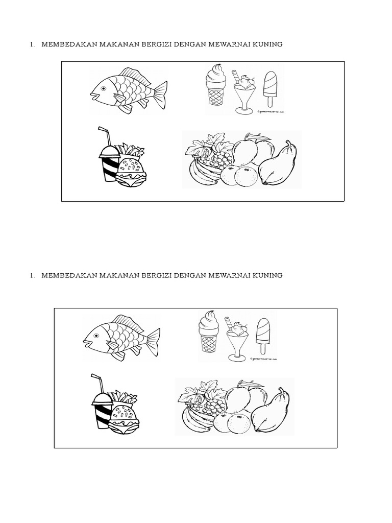 Membedakan Makanan Bergizi Dengan Mewarnai Kuning