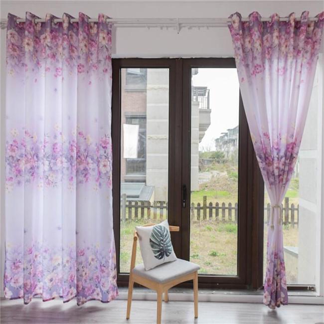 Tirai Jendela Motif Bunga Warna Ungu Untuk Ruang Tamu Kamar Tidur