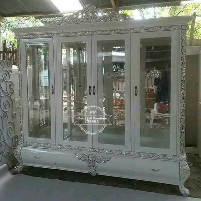 Furniture Khas Kota Jepara Almari Kaca Hias Kayu Jati Lemari
