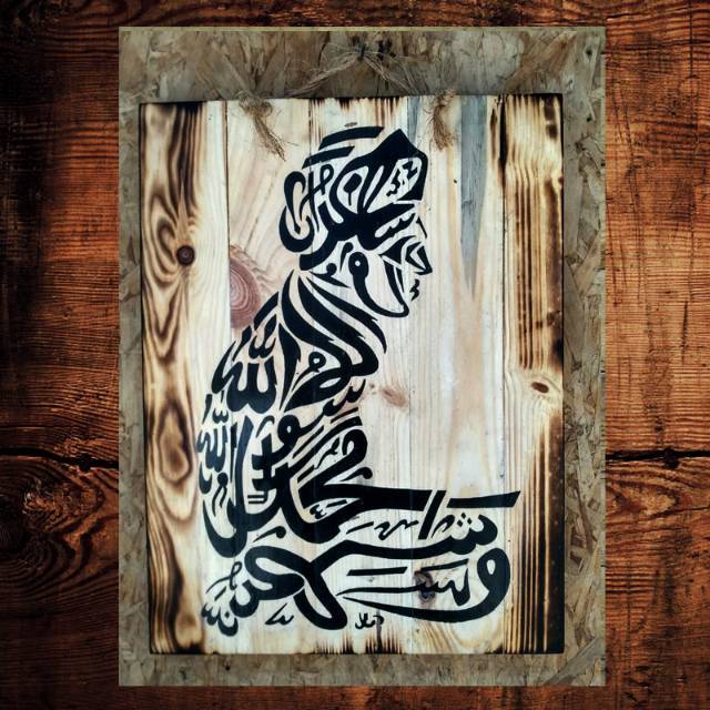 Poster Lukisan Kaligrafi Arab Sholat Moeslim Jatibelanda Bakar