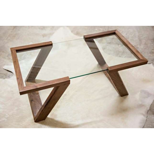 Meja Tamu Frameless Kaca Tempered Minimalis Kayu Pinus Desain Pro