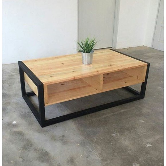 Meja Tamu Industrial Rangka Besi Kayu Solid Jati Belanda Shopee
