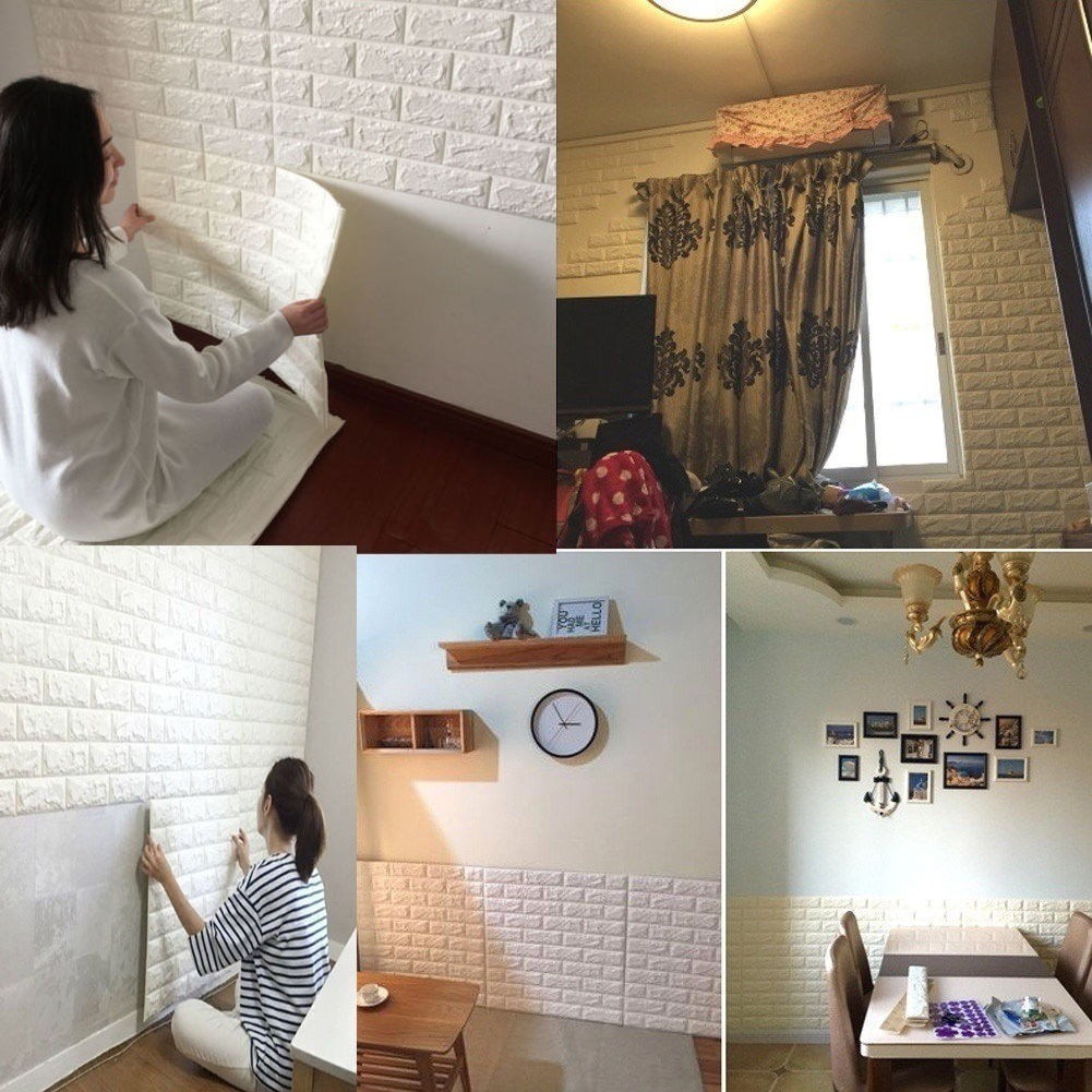 Batu Bata Putih Stereoscopic Busa Non Wallpaper Dinding Yang Latar