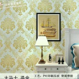 Wallpaper Dinding Murah Ruang Tamu Kamar Tidur Batik Gold Terbagus